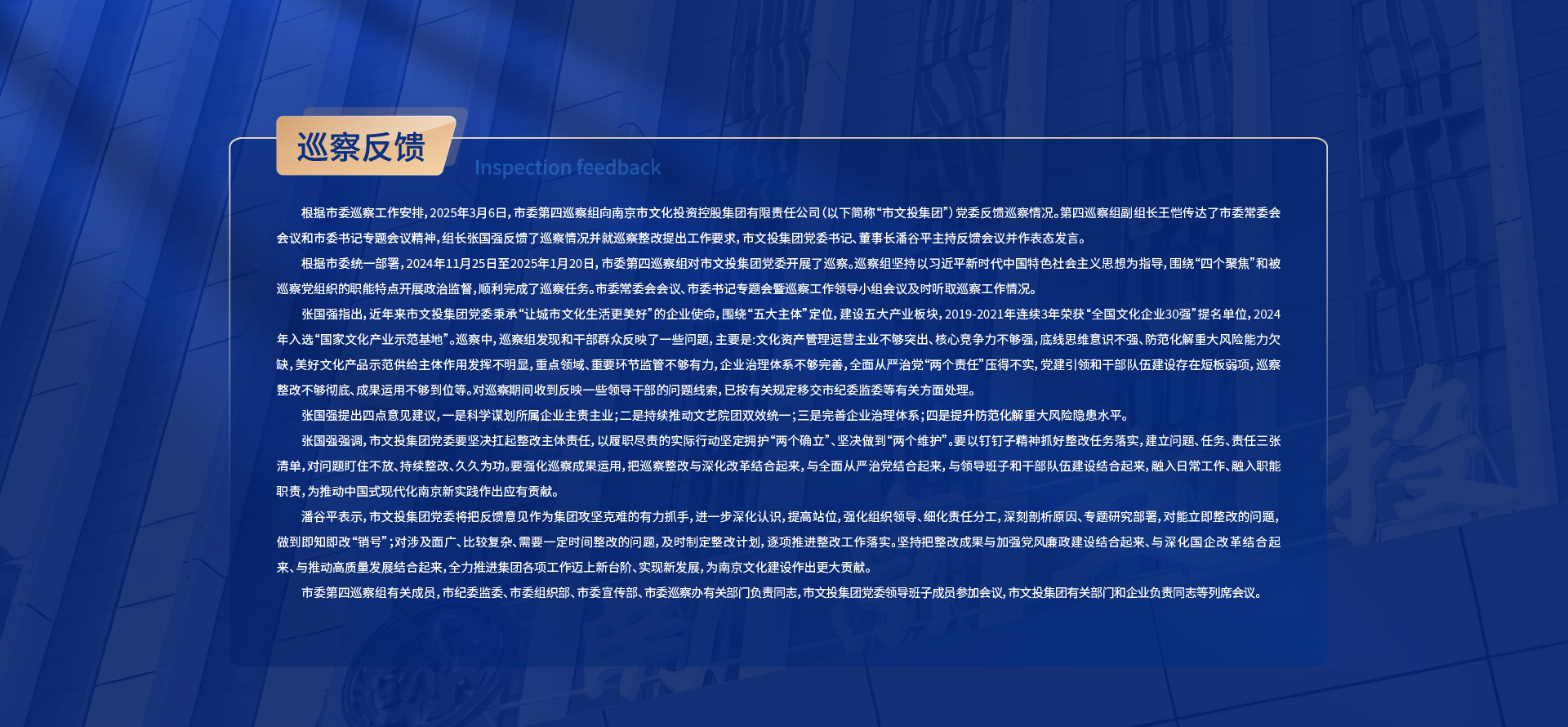 黨建領(lǐng)航南京市文投集團(tuán)領(lǐng)導(dǎo)班子召開2024年度民主生活會暨巡察整改專題民主生活會
